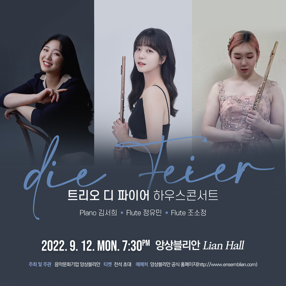 함께 좋아하는 음악을 나누면서, 마치 축제처럼 음악을 즐기자는 뜻으로 모이게 된 선화 38기 동문 트리오팀 <디 파이어>입니다. 음악을 통해 축제에 대한 설렘과 떠들석한 분위기를 다양하고 색채감 있게 그리고자 하는데요. 이번 공연을 통해 음악을 통해 특별한 순간과 의미를 기념하고, 청중과 소통하며 음악적 소통의 장을 마련할 예정이라고 합니다. 디파이어의 음악의 축제로 여러분을 초대합니다.