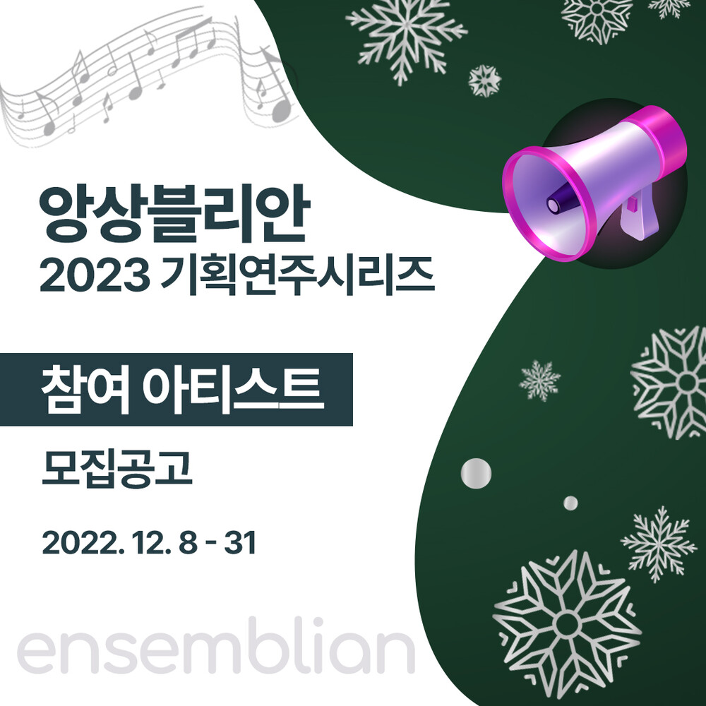 - 앙상블리안 리안홀에서 진행시 무대 당 연주자 최대 4인까지 가능한 점 유의 바랍니다.