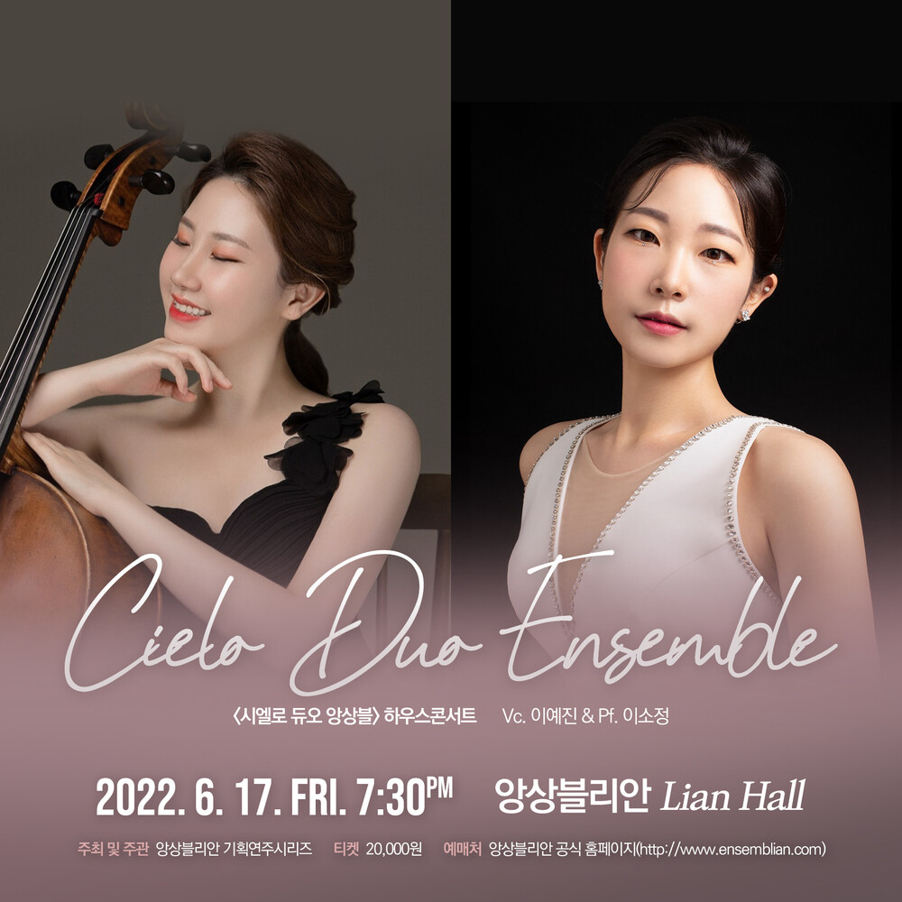 첼리스트 이예진과 피아니스트 이소정이 함께 하는 시엘로 듀오 앙상블입니다. 1부는 잘 알려진 첼로 레퍼토리인 라흐마니노프 보칼리제, 하이든 첼로 협주곡으로, 2부는 피아졸라로 이루어진 이번 콘서트는 친근한 듯 새로운 공연으로 준비되어 있습니다. 가까운 거리에서 두 연주자의 호흡을 만나보세요.