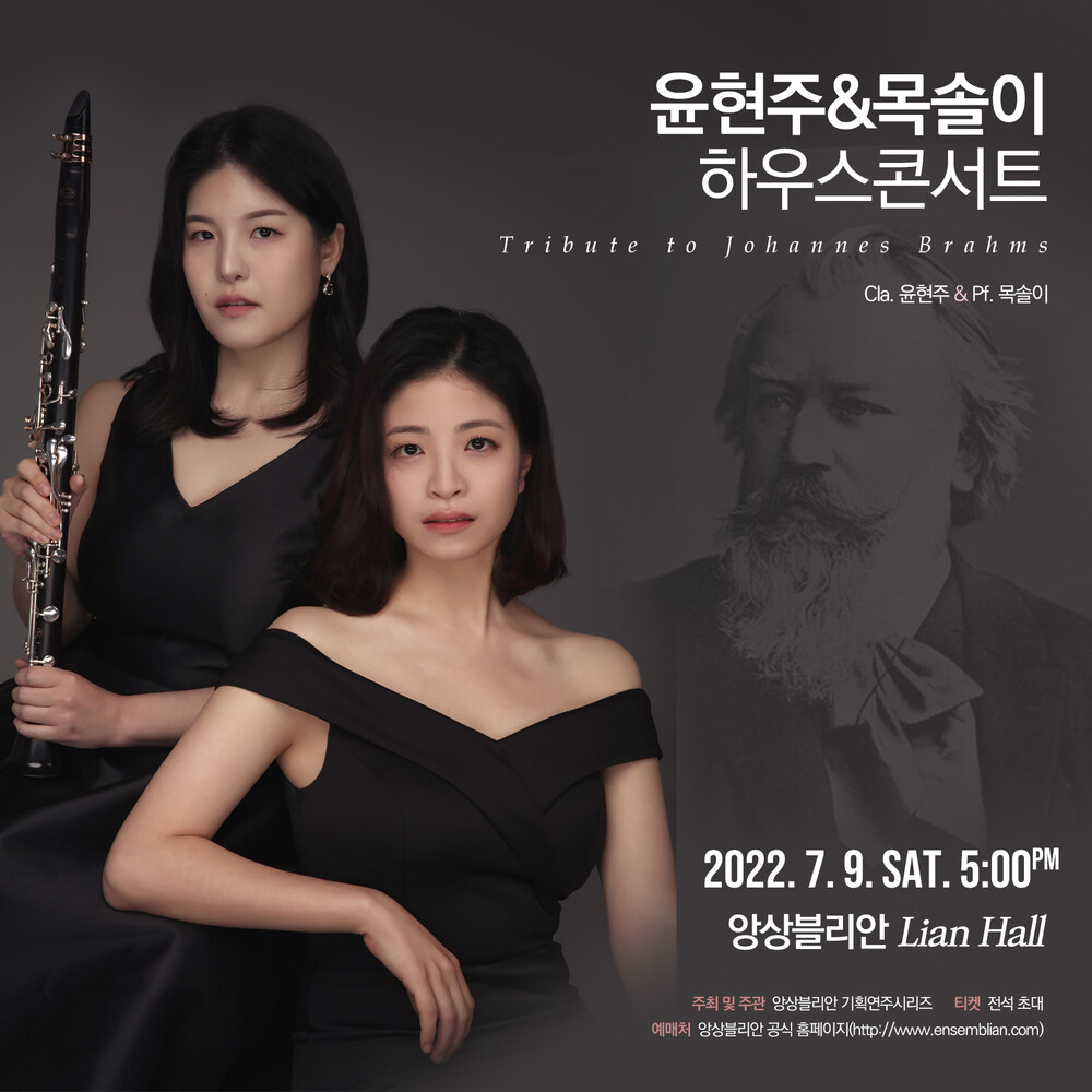 음악이 얼마나 우리에게 큰 즐거움을 줄까요? 동덕여대 박사과정 중 만난 두 연주자 음악을 통해 느끼는 즐거움을 관객들에게도 전달하고자 합니다. 클라리넷과 피아노 듀오인 윤현주, 목솔이 아티스트는 앞으로 다양한 편성의 음악도 함께 시도하고자 한다고 합니다. 두 연주자가 브람스에게 헌정하는 무대를 만나보세요.
