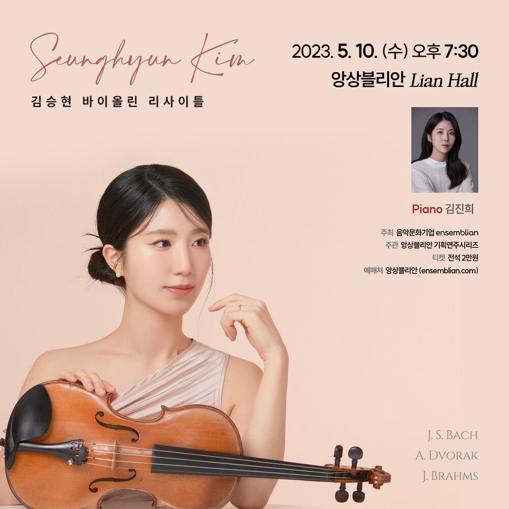 이화여대에서 수학 후 독일 Saarbrucken, Stuttgart, Frankfurt, 중국 National Centre 연주를 비롯해 지속적인 독주회 활동으로 연주자로서 성장하고 있는 바이올리니스트 김승현의 독주회입니다. 피아니스트 박진희와 함께 하는 이번 공연에서는 바흐와 드보르작, 브람스의 작품이 함께 합니다.