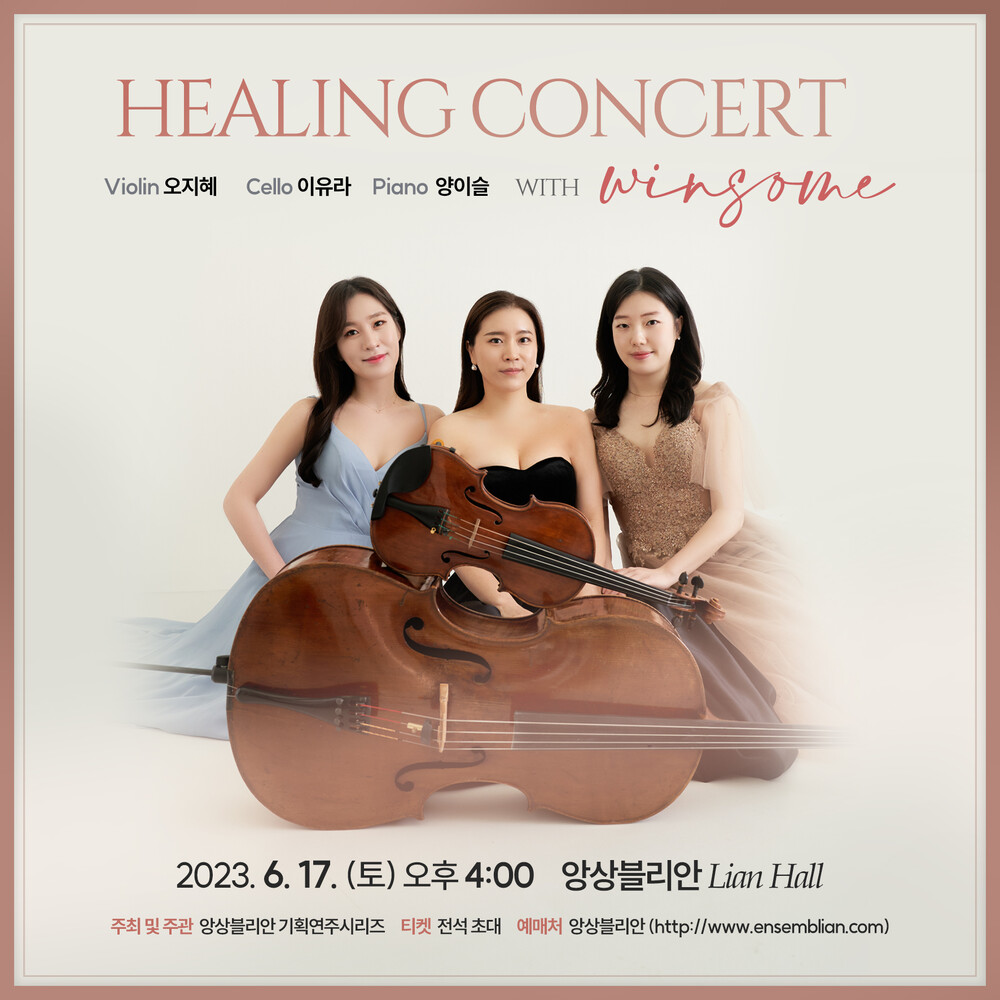 꾸준하고 다양한, 그리고 따스함을 전하는 레퍼토리로 관객을 만나고 있는 윈썸 트리오의 연주입니다. 힐링 콘서트라는 제목으로 진행될 이번 공연에서는 피아노 솔로와 첼로 솔로, 바이올린 솔로 작품들과 더불어 피아노 트리오 작품으로 관객을 만납니다. 윈썸트리오의 연주, 전석 초대로 진행됩니다.